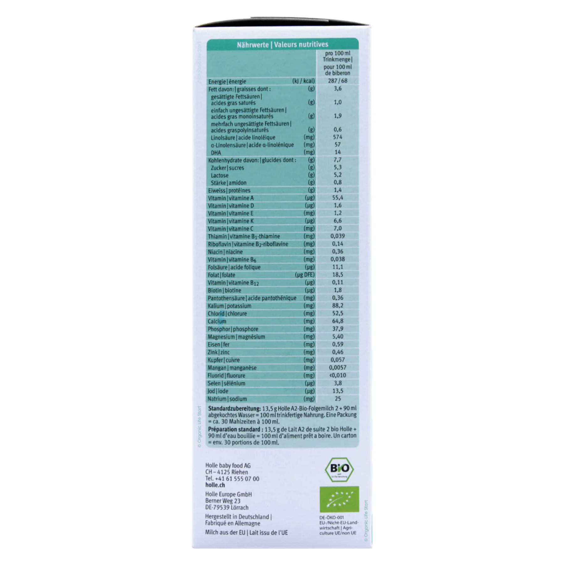 1 Package of Holle A2 Stage 2 Formula = about 91 scoops of formula