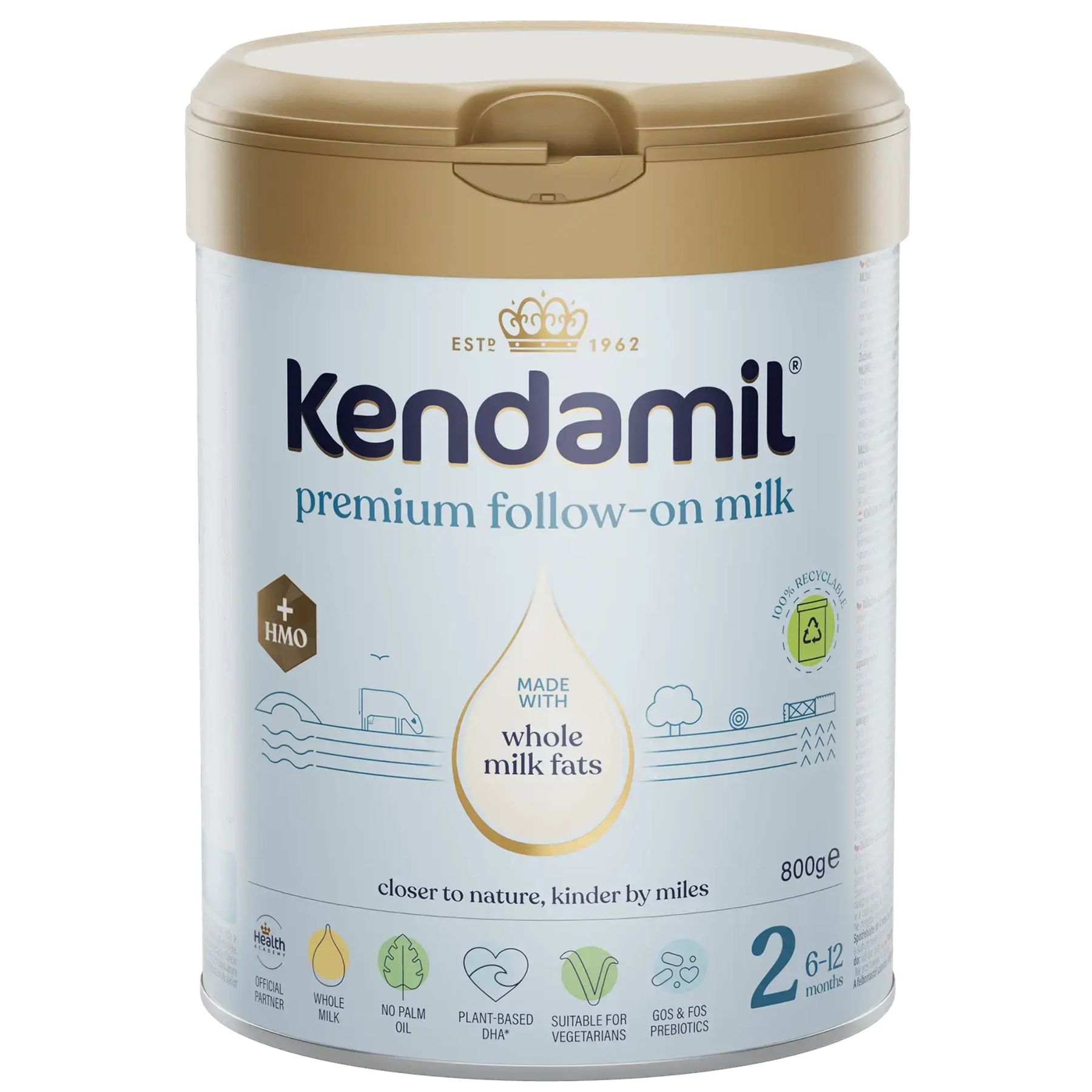 Unlike most standard formulas, Kendamil Premium 2 HMO+ contains no GMOs, palm oil, soy, maltodextrin, or refined sugars, ensuring every tin provides only what your baby truly needs.