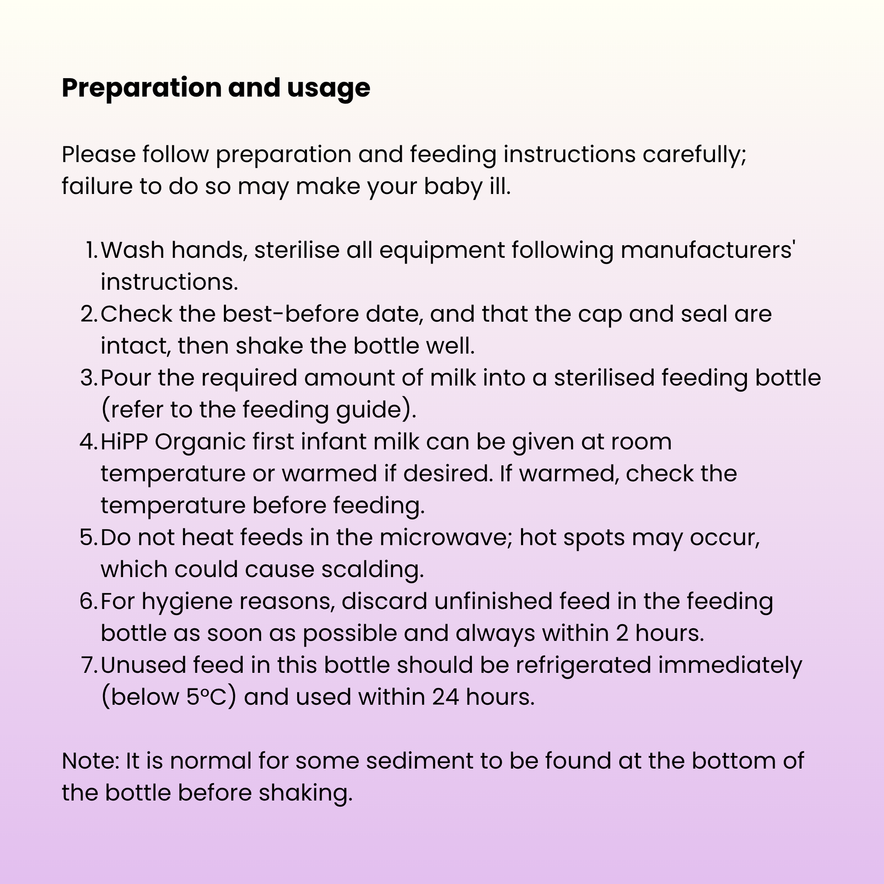 - For hygiene reasons, do not prepare in advance and discard any unfinished feed within 2 hours.