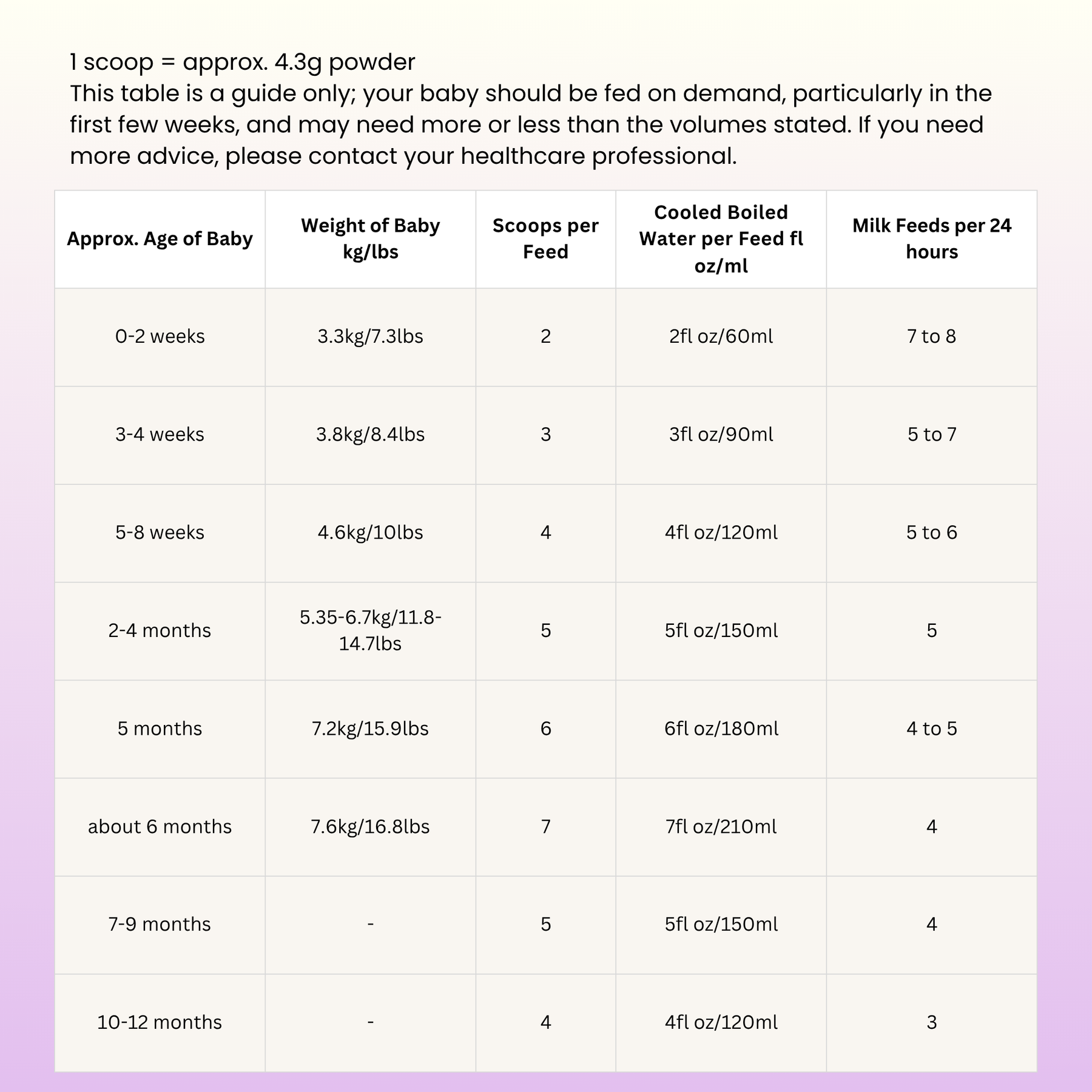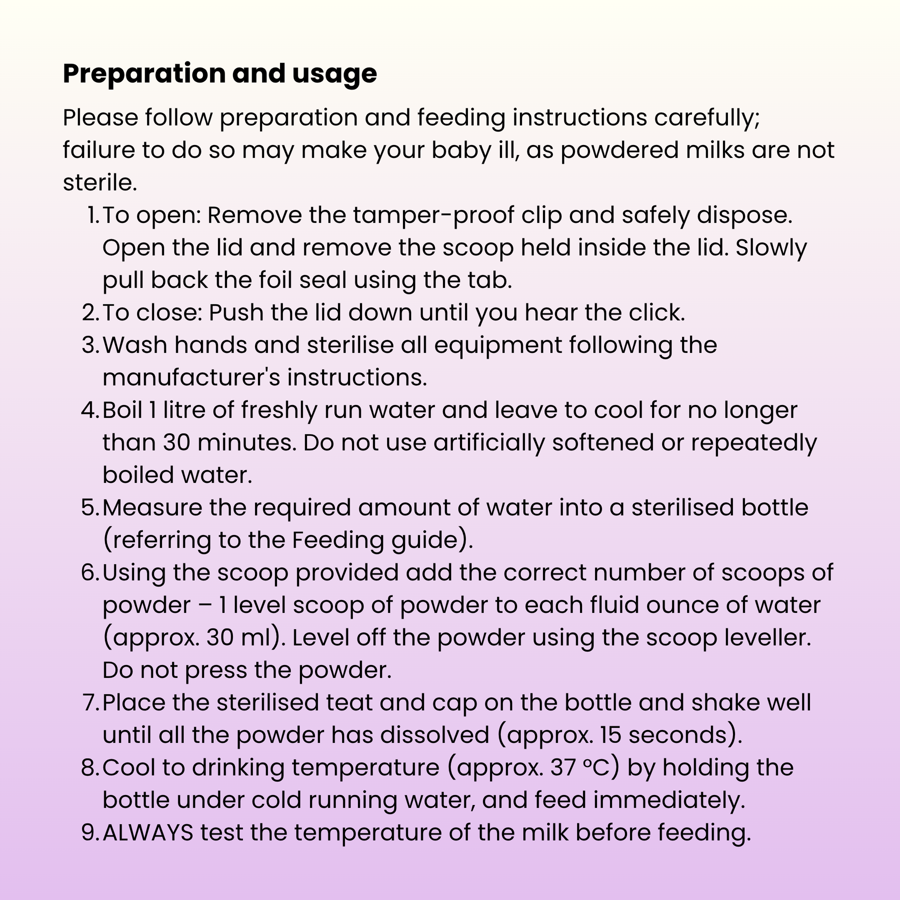- For hygiene reasons, do not prepare in advance and discard any unfinished feed within 2 hours.