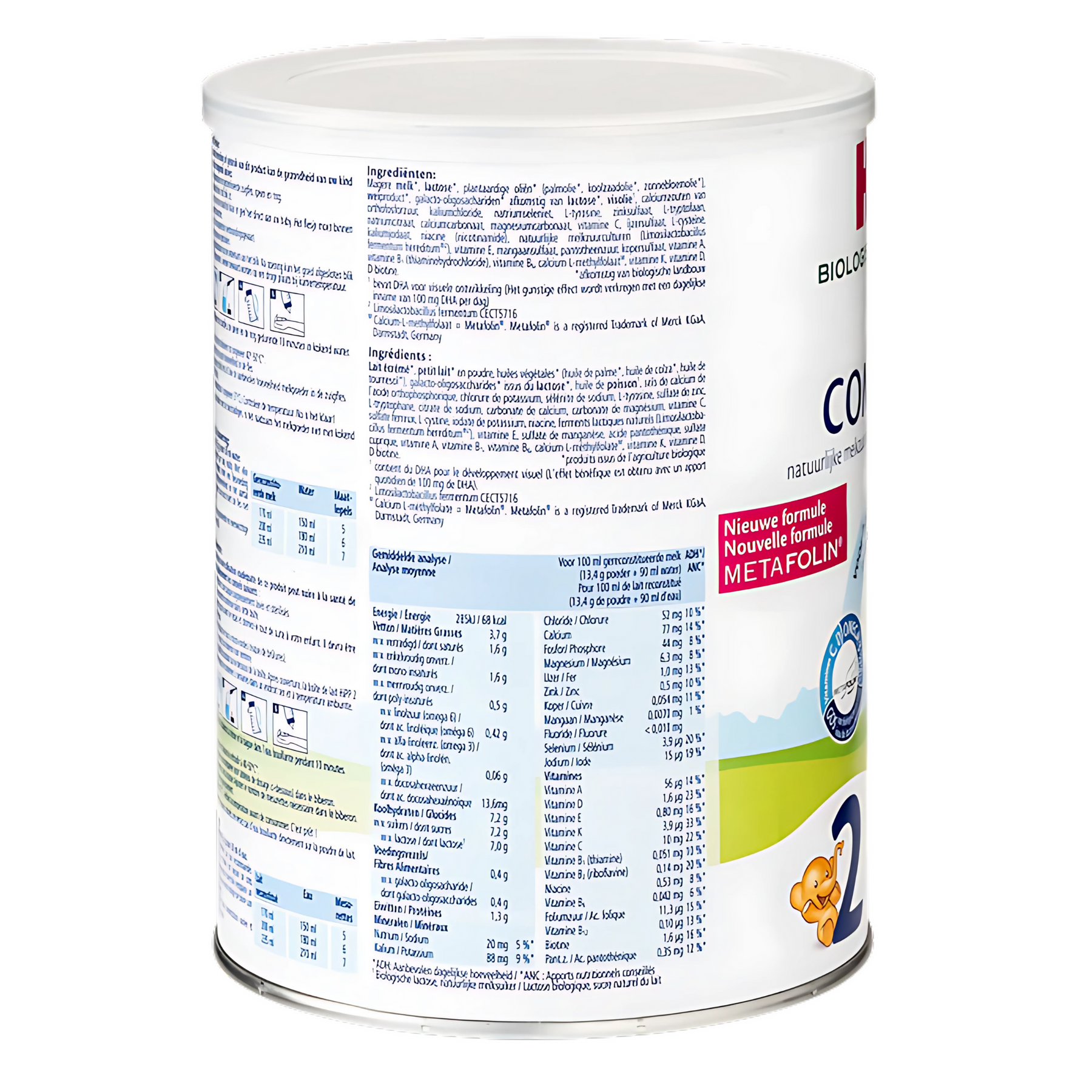 Skimmed Milk *, Lactose *, Vegetable Oils * (Palm Oil *, Rapeseed Oil *, Sunflower Oil *), Whey Product *, Lactose *, Galactooligosaccharides * From Lactose *, Fish Oil¹, Calcium Chloride, Potassium Citrate, Calcium Salts Of Orthophosphoric Acid, Calcium Carbonate, L-Tyrosine , L-Tryptophan, Sodium Citrate, Magnesium Carbonate, Vitamin C, Iron Sulfate, Stabilizer Lactic Acid, L-Cystine, Niacin, Zinc Oxide, Natural Lactic Acid Bacteria (Lactobacillus Fermentum Hereditum®²), Vitamin E, Pantothenic Acid, Copper Sulfate, Vitamin A, Vitamin B1, Vitamin B6 , Potassium Iodate, Calcium-L-Methylfolate, Sodium Selenate, Manganese Sulfate, Vitamin K, Vitamin D, D-Biotin
