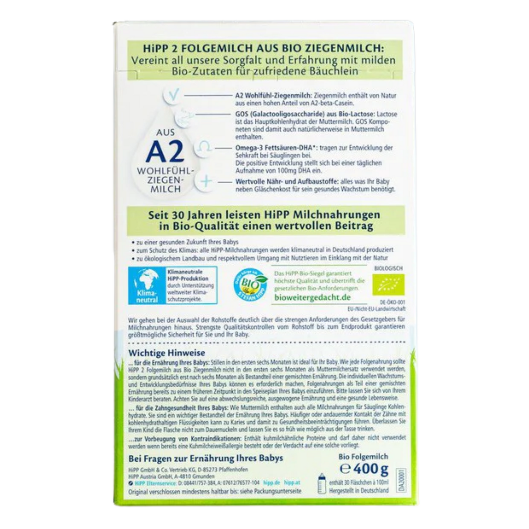 HiPP brings decades of experience in organic infant nutrition to every product. Goat Stage 2 is crafted to support your baby’s transition from milk to solids, offering carefully balanced nutrition made to European organic standards.