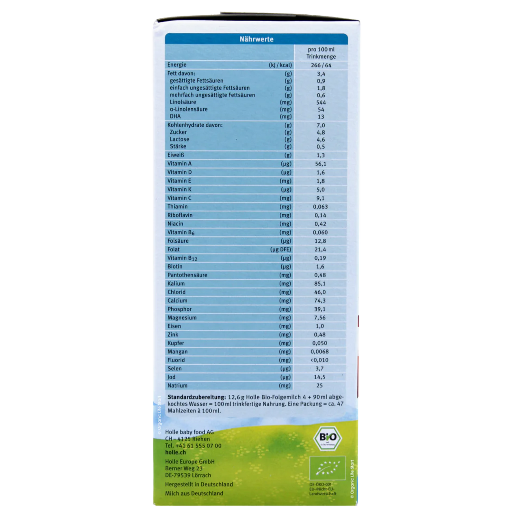 Holle Organic Growing-up Milk 4 is a high-quality, organic formula tailored for toddlers 12 months and older as part of a balanced diet. Made with Demeter-certified milk, it provides essential nutrients such as DHA for eyesight, ALA for brain and nerve health, and vitamins C and D to support the immune system. Holle 4 ensures your toddler receives gentle, sustainable nutrition for their growth and development.