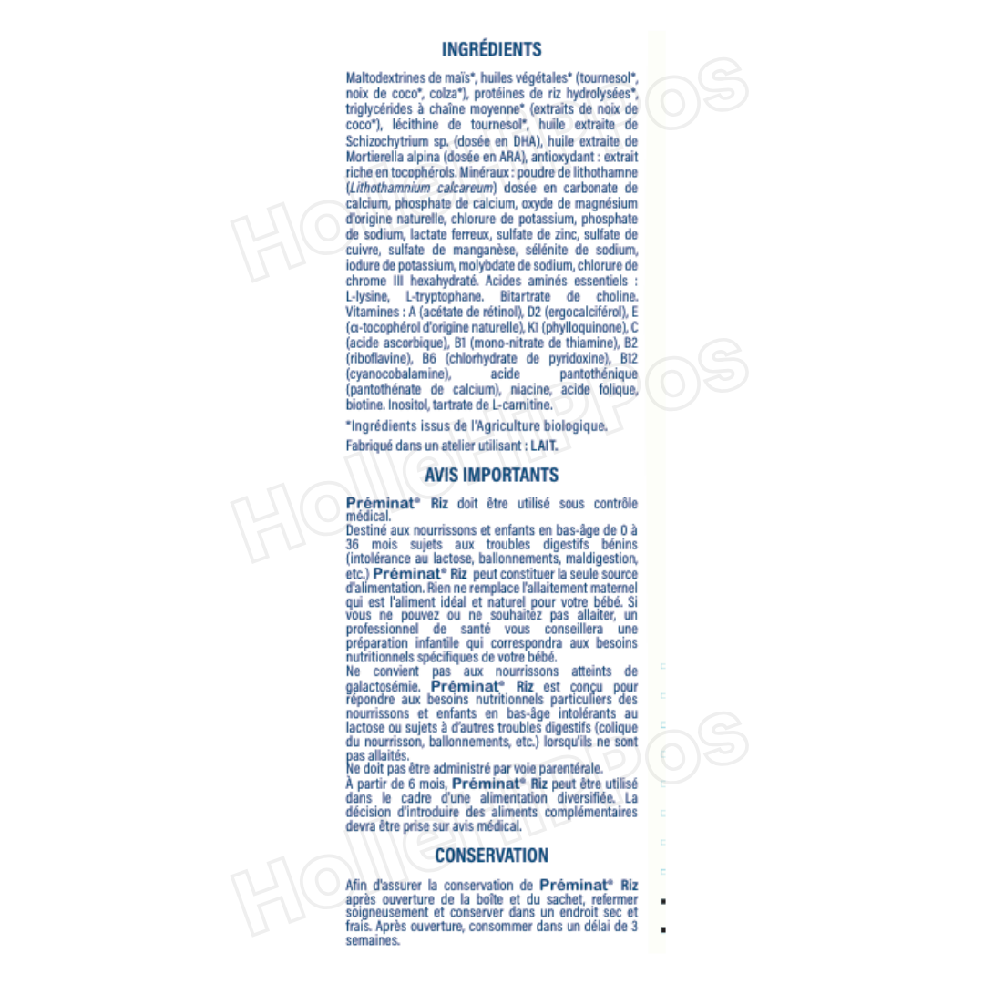 Préminat Riz Organic Infant Formula 600g | 0-36 months